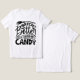 This Halloween-themed design features the playful phrase "Witch Better Have My Candy" arranged in a dynamic, mixed-font layout. The word "Witch" is displayed in bold, blocky letters, while "Better" is written in a cursive, flowing script, adding a sense of urgency and fun to the design. The phrase "Have My" is enclosed within a banner, further emphasizing the demand. The word "Candy" stands out at the bottom in large, block letters, with small skull illustrations integrated into the design. Additional Halloween elements, such as a witch's broomstick, a bat, a star, and wrapped candy, are scattered throughout the composition, enhancing the spooky and festive feel.
