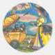TWILIGHT STROLL, WITCH NANNY PUSHING BLACK CAT PUMPKIN PRAM. HALLOWEEN STICKERS Round * Customise ...Look For Matching Items Susan Brack Design