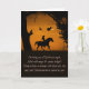 Super cute card of a horse and rider on Halloween night. A witch and her familiars, a black cat, owl and raven, oak tree and crescent moon and a fun poem for Halloween. Wish someone an extraordinary, amazing, unique, exceptional, special, fun, and remarkable Halloween!