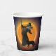 A witch and her familiar, a black cat, are silhouetted against a bright orange harvest moon in a dark blue-gray sky. Beautiful Halloween image for your party! Created to go with the Witch and Black Cat with Orange Moon paper plates.