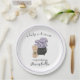 These custom baby shower plates feature a cute Halloween theme. An image of a witch cauldron is placed in the centre with a stack of baby blocks in front. A little spider is building a web across the blocks. The phrase "a baby is brewing" is printed across the top of the plate in an elegant script font. A sample name is printed at the bottom which you can personalise to include your own custom name or other text. It's perfect for a Fall or Halloween themed baby shower.