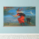 Witch Flying with Black Cat on Halloween Night Canvas Print