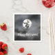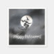 A fun Halloween paper napkin for your spooky party with a broom-flying witch against a full moon and a "Happy Halloween" text.