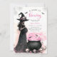 Celebrate the magic of motherhood with this Witch Halloween Baby Shower Invitation, perfect for an October shower with a spooky twist! Featuring a beautifully illustrated watercolor witch in black, a bubbling cauldron, and mystical pink mist, this design combines gothic elegance with seasonal charm. Accents like skulls, spider webs, bats, and leafless trees create a wonderfully haunting atmosphere. Ideal for a mum-to-be who loves all things witchy, whimsical, and Halloween-inspired—fully customisable for your enchanted celebration!