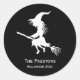 This cute Halloween sticker is accented with a flying witch on a broomstick, and is easy to personalise with your name, and the date.