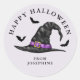 Witch Hat And Bats Lilac Happy Halloween Classic Round Sticker