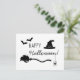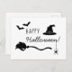 Witch Hat And Broom With Spider And Bats Halloween Postcard