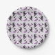 Serve your treats in style with this playful Halloween paper plate. Featuring a repeating pattern of witch hats, high heels and flying bats on a light lilac background, this design brings a fun and festive look to your party table.