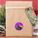 A green banded black witch's hat, broom and flying black bat on a purple gradient background makes a great Halloween trick or treat sticker! This spooky Witch Hat design with vibrant colours will delight any trick-or-treater!