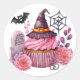 Add a touch of charm and sweetness to your Halloween projects with this magnificent pink sticker featuring a delicate pattern of flowers, bats, a witch hat and a delicious cake.