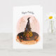 In the orange autumn light, leaves have fallen around a stylish Halloween witch's hat turned fairy tale dwelling. Original illustration by artist, Noël Snow.