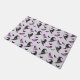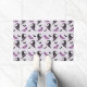 Welcome guests in festive style with this Halloween doormat featuring a pattern of witch hats, high heels and flying bats on a light lilac background.
