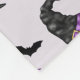 Get cosy this spooky season with a blanket featuring a pattern of witch hats, high heels and flying bats on a light lilac background.
