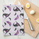 Add a festive seasonal accent to your kitchen with this Halloween towel featuring a playful pattern of witch hats, high heels and flying bats on a light lilac background.