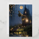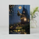 Send a touch of spooky enchantment with this whimsical Halloween card. The front features a photo of a witch flying on her broomstick just outside her spooky haunted house, small faint lights line the walkway and a lake reflects the moonlight. Card captures the mystery, and scary magic of Halloween night, making it perfect for sending to friends and family. Personalise card with your own photo or use ours. At the bottom, gold foil “Happy Halloween” text is designed with a jack-o-lantern image for the letter “O,” and beneath it a custom option to add your family name. On the back enter your name and address, personalise the default message and make it uniquely yours. Greetings end with a cute watercolor pumpkin, which is sure to bring a smile to your recipient's face.