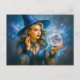 Witch in blue with crystal ball holiday postcard