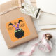This cute & funny square Halloween sticker features a black pot of green bubbling witch's brew with witch legs upside down in the pot. The background is orange and the text at the top reads: Trick or Treat