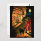 A fantastic vintage Halloween card featuring a witch looking through a window where children are bobbing for apples at Halloween night.