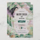 Magical witch musical birthday invitation with pink and green fantasy vibes. Editable Canva template, digital and personalized for a themed party.