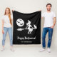 Witch On A Broom Black And White Happy Halloween Fleece Blanket