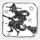 Genuine black and white art. Vintage witch on a broom - perfect for the Halloween season or any day!