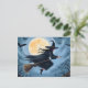 Witch on a Broomstick | Happy Halloween Painted Holiday Postcard