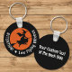 Young flying witch riding a broom. Vector icons with customisable colours. Custom background colour. Custom text on both sides.