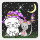 Witch on Moon Cat and Mouse Halloween Square Sticker