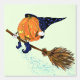 Witch Pumpkin Flying with Broom Funny Halloween Wallpaper