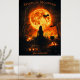 Witch’s Halloween with Full Moon, Candles, & Bats Poster
