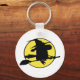 Witch Silhouette Flying on Broom Against Full Moon Key Ring