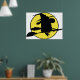 Witch Silhouette Flying on Broom Against Full Moon Poster