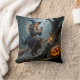 A witch riding a broom while texting on her cell phone collides with a tree near a glowing jack-o-lantern.
