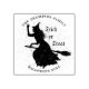 Personalised halloween rubber stamp. Vector illustration with grunge silhouette of witch flying on a broom. Text "Trick or Treat". Add your text.