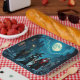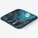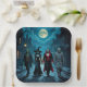 Halloween party paper plates with ai art depicting a witch, vampire, mummy and zombie walking through Halloween night with a full moon in a cool comic book style.