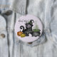 Adorable black cat in a witch hat beside a bubbling cauldron and glowing jack-o-lanterns, paired with the phrase "Witch Vibes." A charming Halloween-themed button full of spooky-cute energy. Perfect for cat lovers and Halloween fans.