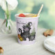 Adorable black cat in a witch hat beside a bubbling cauldron and glowing jack-o-lanterns, paired with the phrase "Witch Vibes." A charming Halloween-themed paper cup full of spooky-cute energy. Perfect for cat lovers and Halloween fans.
