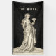 mysterious calling card featuring framed vintage etching of witch holding a torch.