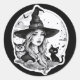 Witch with a Cat and an Owl - Halloween Fan Fun 1 Classic Round Sticker