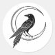 Witchcore Black Raven & Moon Line Art Classic Round Sticker