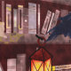 A busy witch's bookshelf filled with spell books, parchments, black cats, ravens, lanterns, cobwebs, spiders, mice and locked treasure chests of secrets. This is part of the Halloween/Samhain collection of cheriedesues_studio.