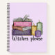 A playful witch-inspired spiral notebook featuring a charming stack of magical books with the phrase "Witches Please." Perfect for book lovers, modern witches, and Halloween vibes.