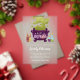 Whimsical halloween theme baby shower invitation featuring illustration of a purple cauldron with green fume coming out of it. The text says "a baby is brewing."