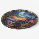 Celebrate Halloween with these spooky plates featuring a witch's cauldron, jack-o-lanterns, candles, and bats against a backdrop of a creepy fantasy castle.