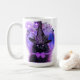 This enchanting design features a furry black cat with piercing purple eyes, wearing a whimsical witch’s hat adorned with delicate purple flowers on its band. The cat sits gracefully in front of a mystical full moon, which is composed of varying shades of purple, giving the scene a magical and dreamlike feel. Surrounding the moon is a soft, ethereal purple glow, further enhancing the magical ambiance. At the top of the moon, a half-circle of vibrant purple flowers adds an elegant and natural touch, blending the mystical and floral elements beautifully. Three bright stars twinkle on the side of the moon, adding a celestial sparkle to the scene. The black cat, with its witchy charm and serene presence, serves as the focal point, exuding both mystery and grace in this captivating design. Perfect for those who love the magical and mystical, this design combines elements of nature, enchantment, and a bit of Halloween spirit, making it ideal for t-shirts, wall art, or any Halloween-inspired merchandise.