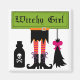 Witchy Girl Halloween design T-shirts, tote bags that are great for trick or treating, mugs, cards, stickers, magnets, buttons, and other witch design apparel and gifts.