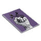 Witchy hand notebook with an ink drawing depicting a hand in fist with sharp black fingernails and a black ring with evil monsters with sharp teeth over purple background. Fun creepy creepy illustration with a gothic feel.