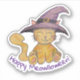 * A hand drawn sketch combination of a cat wearing a witches hat.