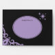 Add an enchanting touch to your holiday correspondence with this witchy return address Halloween envelope. Designed to complement our flat and folded invitations, it features moody combination of black, soft lavender and whimsical sparkle motifs — perfect for your invitations, thank-you cards, or fancy notes. Part of the Midnight Revelrie Halloween Invitation Suite,