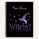 Linda Baysinger Peck’s purple and black Halloween witch hat design, with text that reads, “Witchy”, an orange spider and stars.